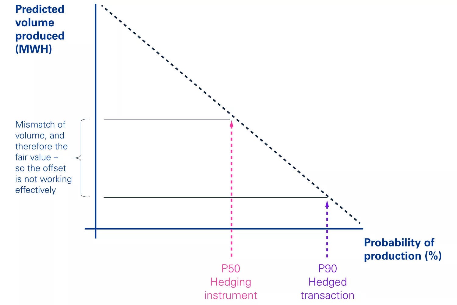 Subject to certain conditions, the amendments permit companies to designate a variable nominal volume of forecasted sales or purchases of renewable electricity as the hedged transaction, rather than a fixed volume based on P90 estimates. The variable hedged volume is based on the variable volume expected to be delivered by the generation facility referenced in the hedging instrument. This would facilitate an economic offset between the hedging instrument and the hedged transaction, enabling companies to apply hedge accounting.