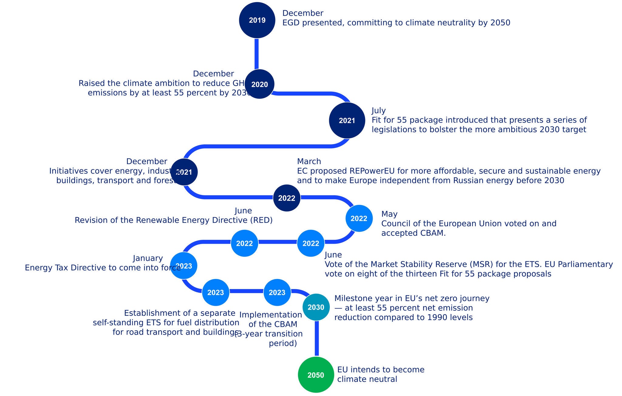 Fit for 55 is the EU’s most ambitious initiative to reduce its impact on the environment by transforming the workings of the economy, industry, and society. The revised EU ETS now includes maritime transport and a new system, ETS2, will cover buildings, road transport, and small industry starting in 2027. - Fit for 55, finalized in 2023, includes binding legislation on carbon pricing, energy efficiency, and renewable targets, accelerating the EU’s path to climate neutrality.