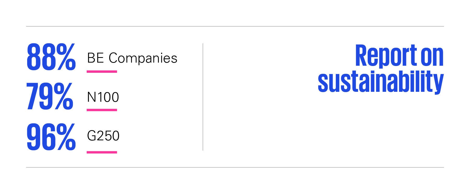 - For almost all G250 companies, reporting on ESG and sustainability has become part of business as usual