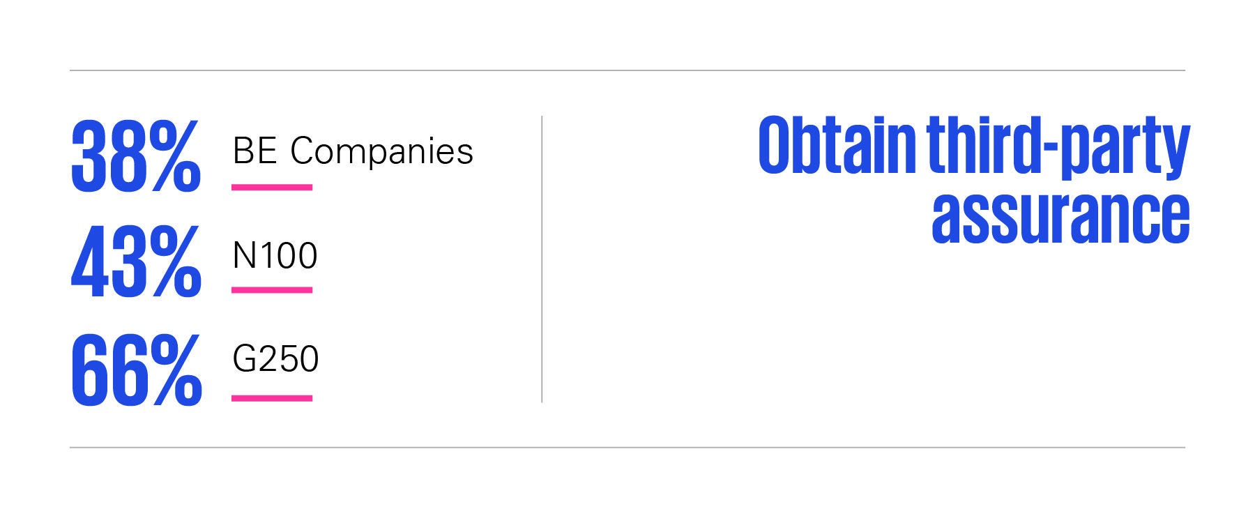 To meet the ever-growing request from stakeholders and investors for the availability of reliable, robust, and comparable sustainability information, assurance rates should further increase. Additionally, for companies in scope of the upcoming CSRD, mandatory assurance on the sustainability information reported will be applicable.