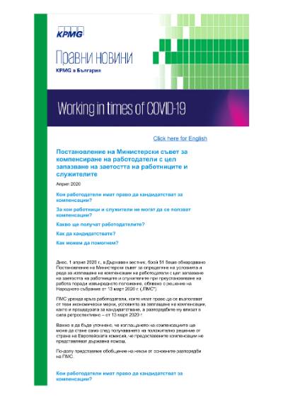 Today, 1 April 2020, a decree of the Council of Ministers on the conditions and procedure for payment of compensation to employers in order to preserve the employment of workers in the event of work stoppage due to the state of emergency, announced by a decision of the National Assembly of 13 March 2020 (the “Decree”) was promulgated the State Gazette, issue No 51.