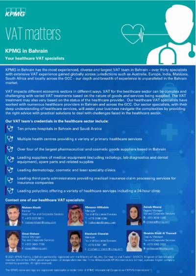 VAT impacts different economic sectors in different ways. Since the Bahrain VAT Law allows for zero-rating of qualifying medical services, healthcare service providers must carefully examine all their supplies to ensure that appropriate VAT treatment has been assigned. Specialist hospitals who allow other medical professionals to use their facilities and equipment for a fee are generally not considered as supplying qualifying healthcare services and therefore, the VAT implications should be considered for such arrangements. Further, pharmacies in Bahrain are expected to assign VAT treatment to medicines based on their Drug Registration Number (DRN) and medical supplies based on their HS code. They may also be required to submit their sales and purchases data classified based on DRN or HS codes in case of a VAT audit.