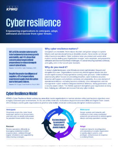 - Industrial internet of things (IIoT): As the lines blur between IT and Operational Technology (OT), KPMG professionals can help you safely embrace the challenges faced when integrating different technology sets and turn industrial cybersecurity into a business enabler.
