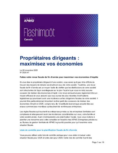 Pour en savoir plus, téléchargez ce numéro du bulletin FlashImpôt Canada.