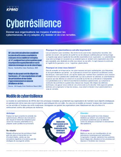 KPMG vous aide à créer un monde numérique fiable et résilient – même face à l'évolution des menaces. Nous offrons une combinaison unique d'expertise technologique, de connaissances approfondies en affaires et de professionnels créatifs soucieux de protéger et de faire croître votre entreprise. Ensemble, créons un monde numérique fiable, pour que vous puissiez repousser les limites du possible.