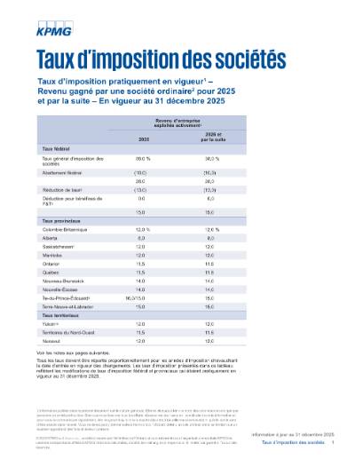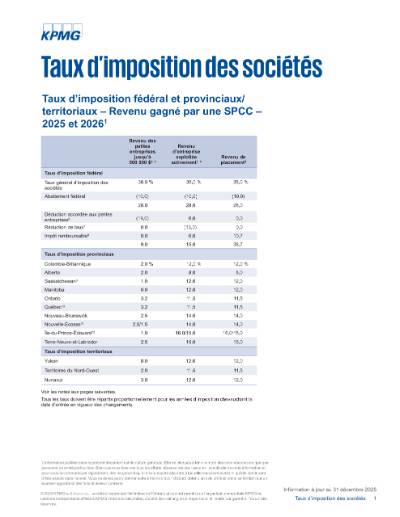 Taux d’imposition des SPCC