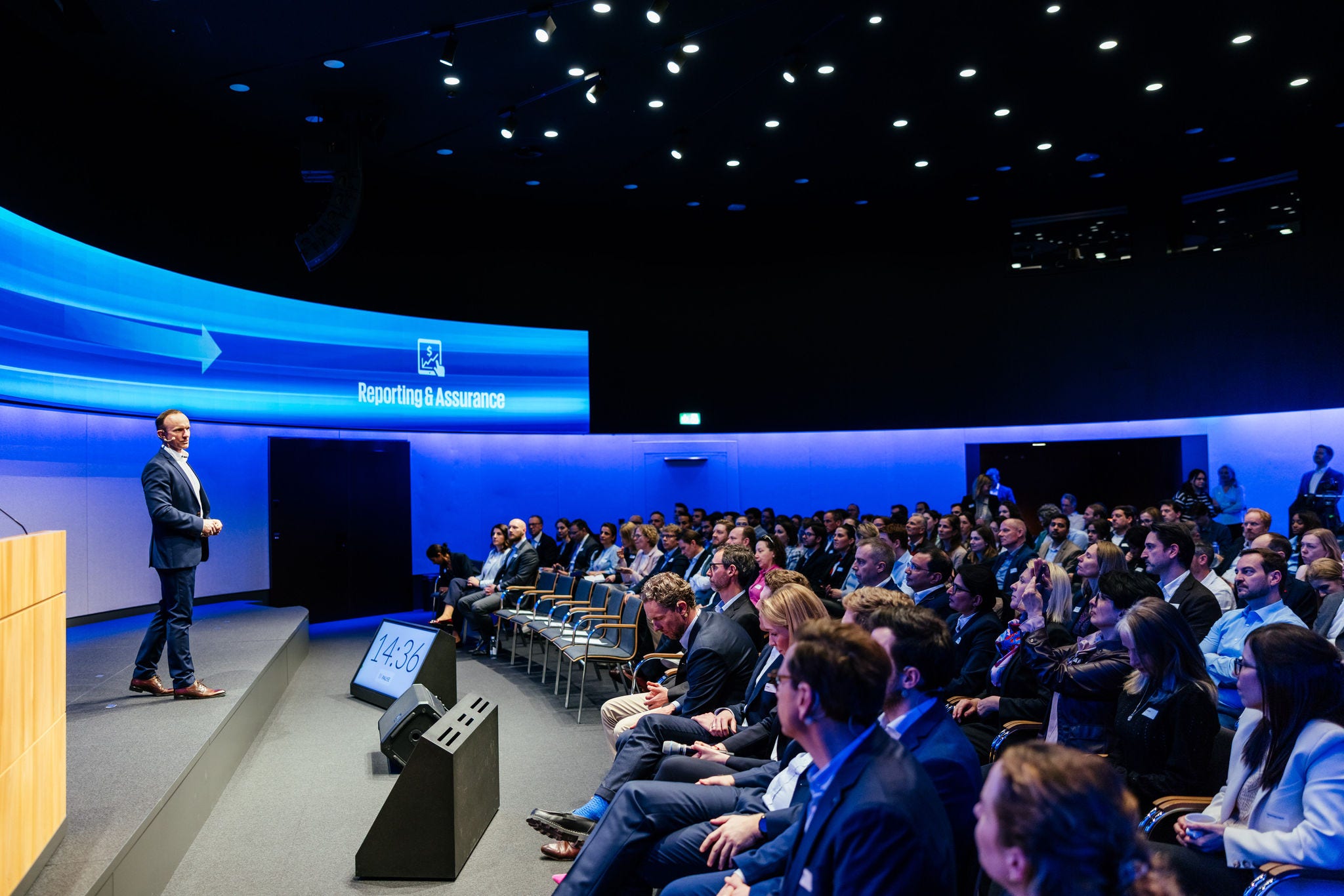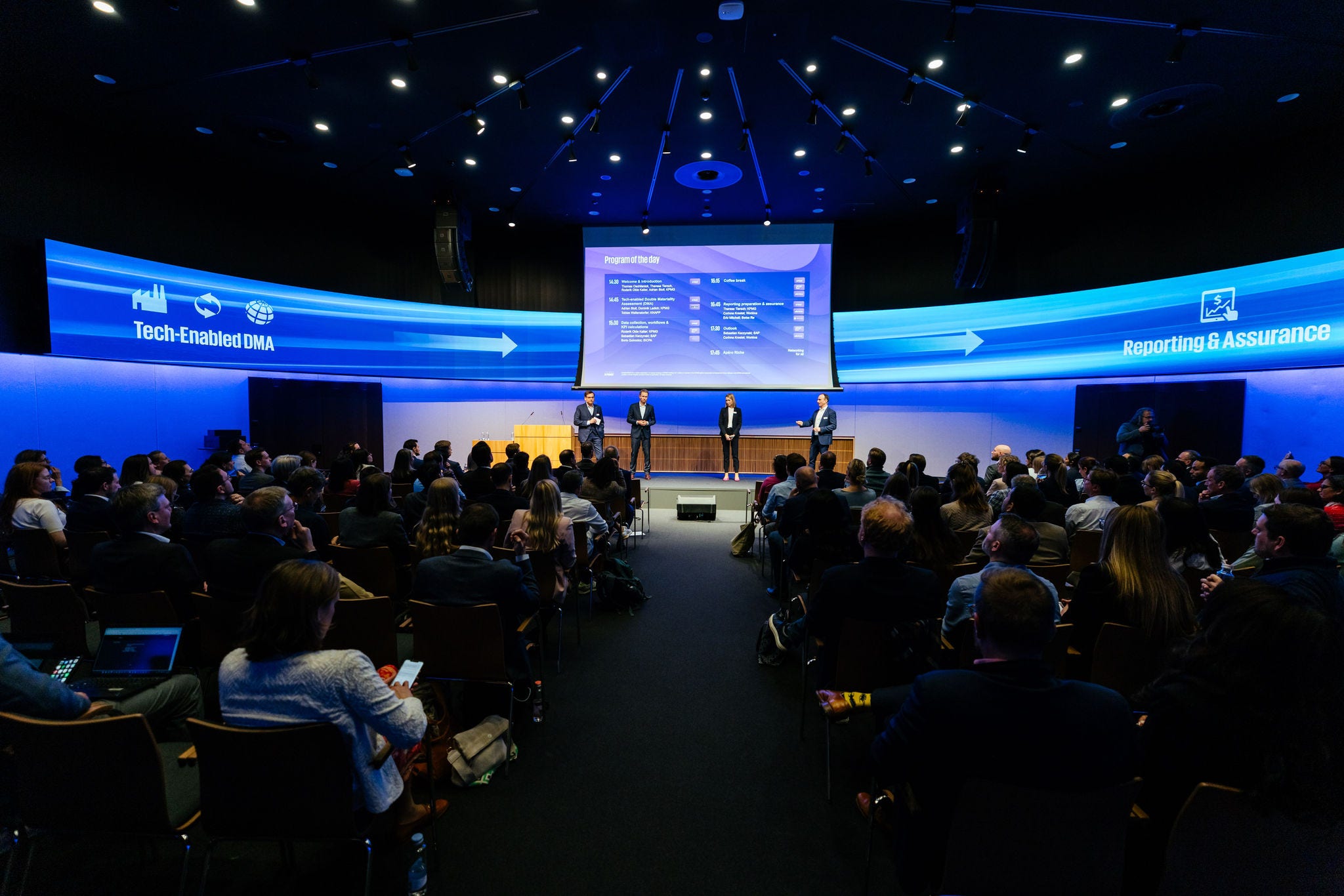 Our journey started with an in-depth look at the DMA and led us through data collection, workflow design, KPI calculation, disclosure management, assurance readiness, and the use of cutting-edge technology to streamline ESG efforts. Attendees had the chance to attend keynote sessions delivered by our alliance partners and leading ESG technology providers SAP and Workiva, showcasing profound experiences and client success stories. During the break and the apéro, they were able to visit innovation booths to see some of the solutions that were relevant for their profession at the time.