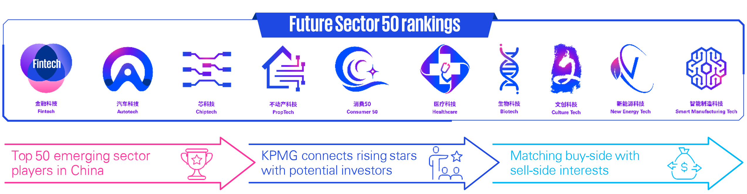 KPMG’s Future Sector 50 series provides a view on China’s changing sector landscape and captures future trends. The Top 50 ranking focuses on companies driving innovation and change within industries.