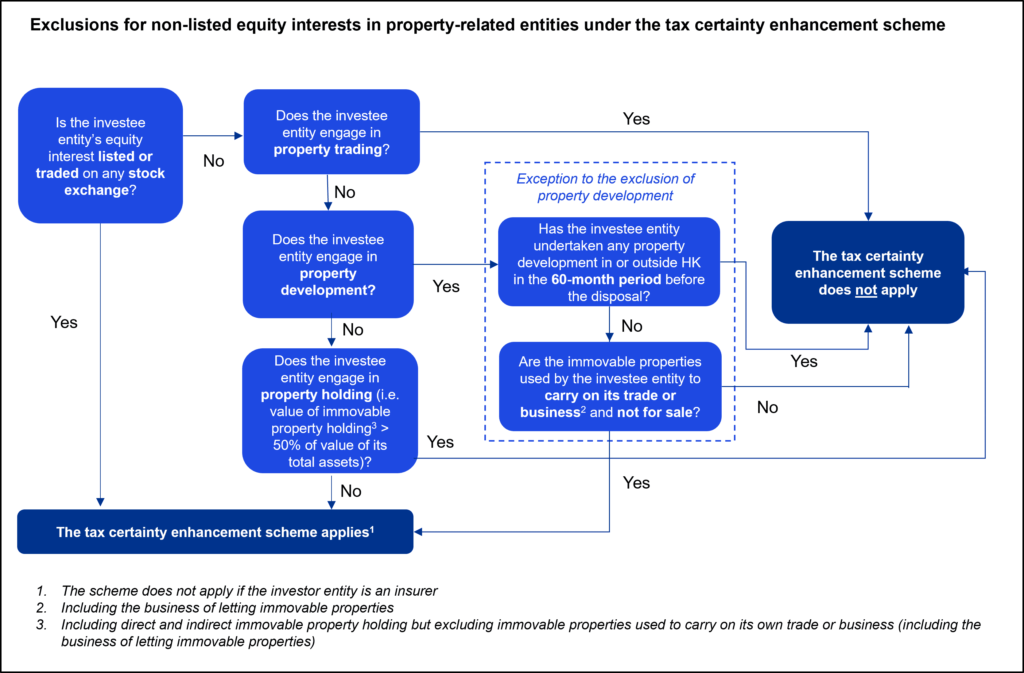 In particular, when comparing the similar legislation implemented in Singapore8, the Scheme in Hong Kong is more competitive in various aspects – e.g. a lower ownership requirement, a wider scope covering different forms of investor/investee entities and equity interests, and the flexibility on measuring the 15% ownership threshold on a group basis, etc.