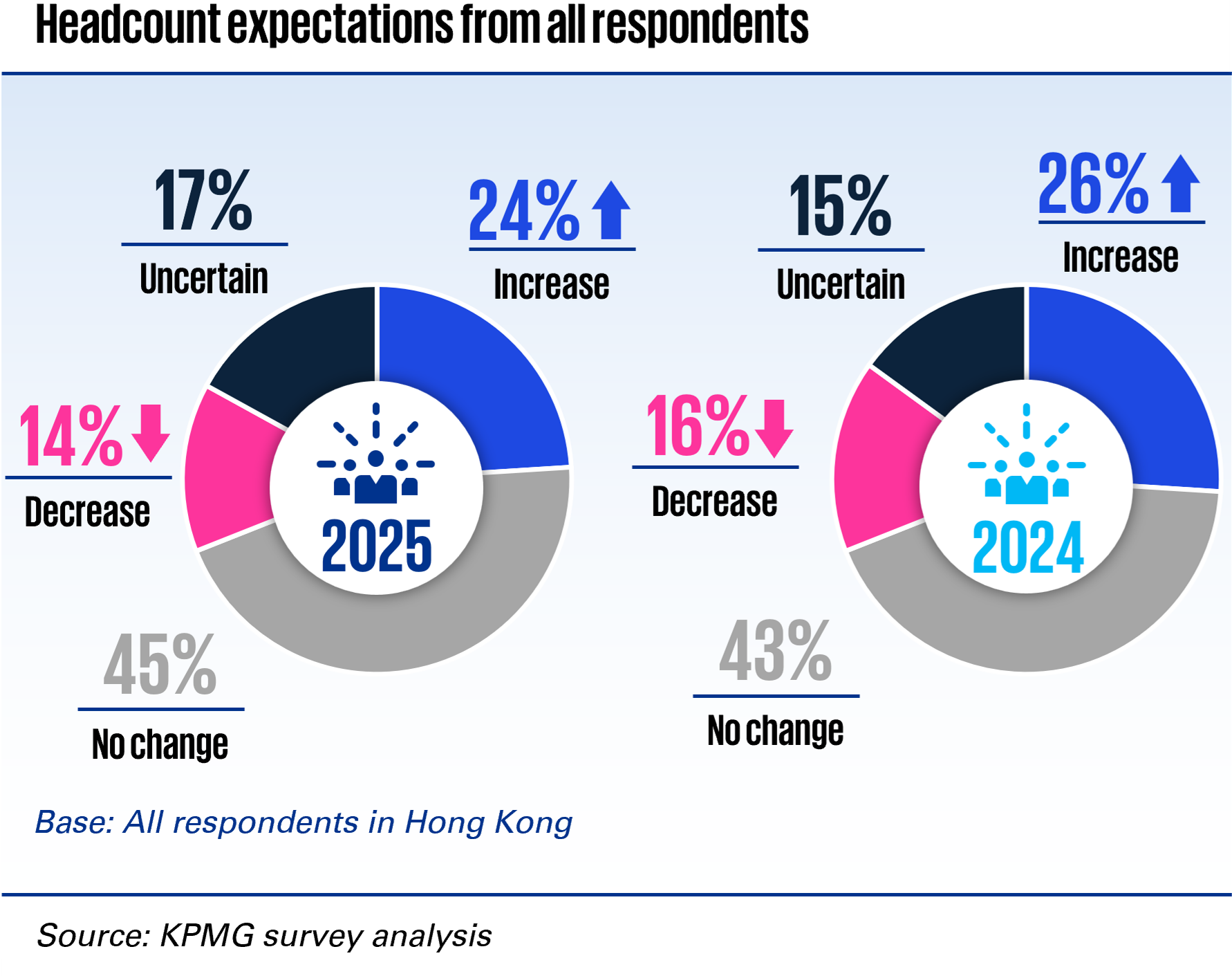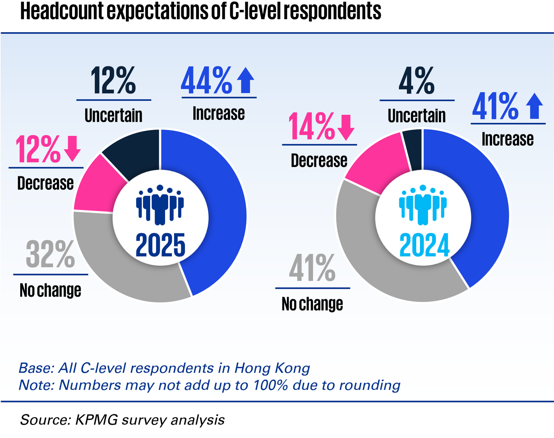 of C-level respondents anticipate headcount expansion in 2025, showing more optimism