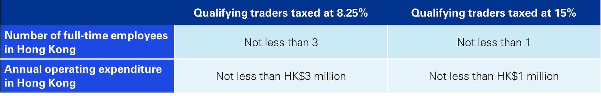 Currently, Singapore also offers a tax incentive for commodity trading businesses in Singapore under the Global Trader Programme7 (GTP). The GTP applies to a wide range of commodity trading activities (including physical trading, derivative trading and structured commodity financing activities) and offers a preferential tax rate as low as 5%. While there are differences in the scope and tax rate offered under the Hong Kong and Singapore regimes, taxpayers should be mindful that the qualifying requirements, the degree of certainty and compliance burden may also be different under the two regimes.