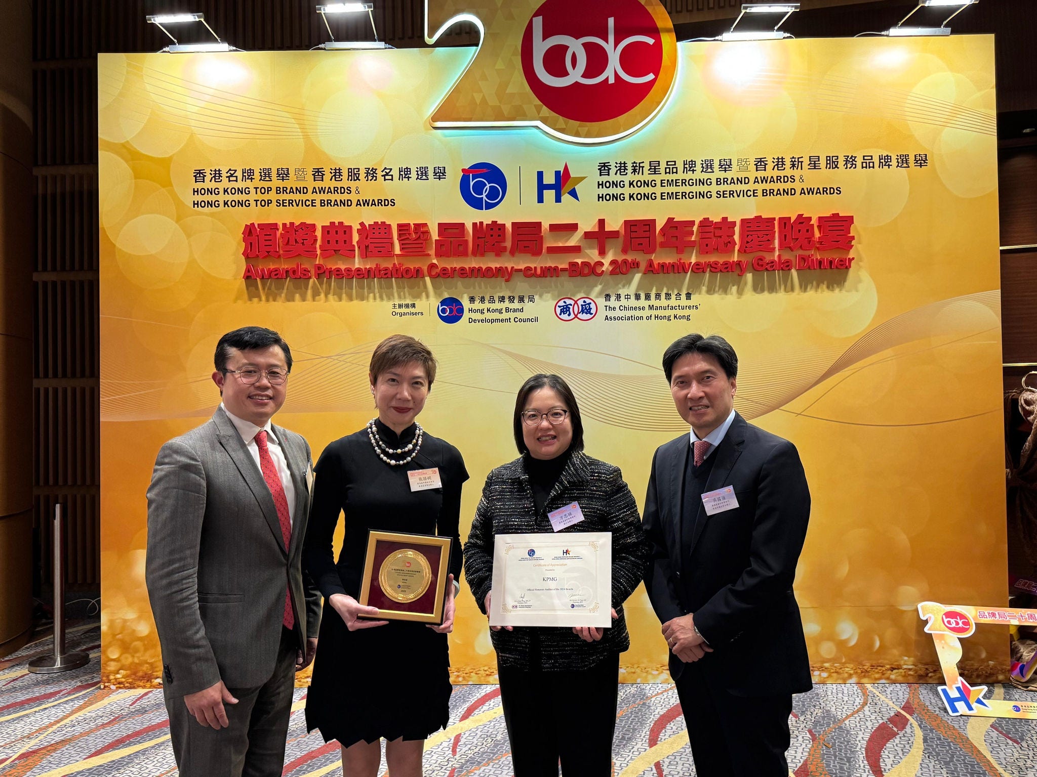 14 February 2025, Hong Kong (SAR), China ("Hong Kong") – KPMG has been awarded “The Brand Development Council 20th Anniversary Special Merit Award” at the 2024 Top Brand Awards Presentation Ceremony-cum-BDC 20th Anniversary Gala Dinner. The award not only acknowledges KPMG’s efforts in providing professional services but also highlights our commitment to supporting Hong Kong’s growth as a leading commercial and international financial centre, building trust with clients and the public since our establishment in the city in 1945.