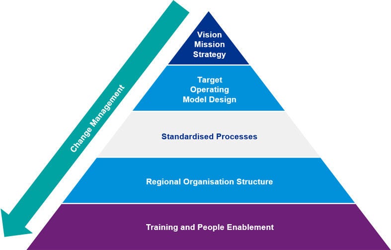 - Conducted operational transformation and change management to achieve a successful and sustainable implementation of the new regional organisation.