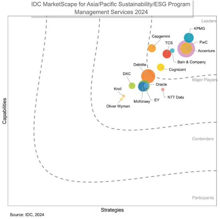 毕马威在IDC MarketScape发布的《2024年亚太地区可持续发展/ESG项目管理服务供应商评估》中获评为领导者。
