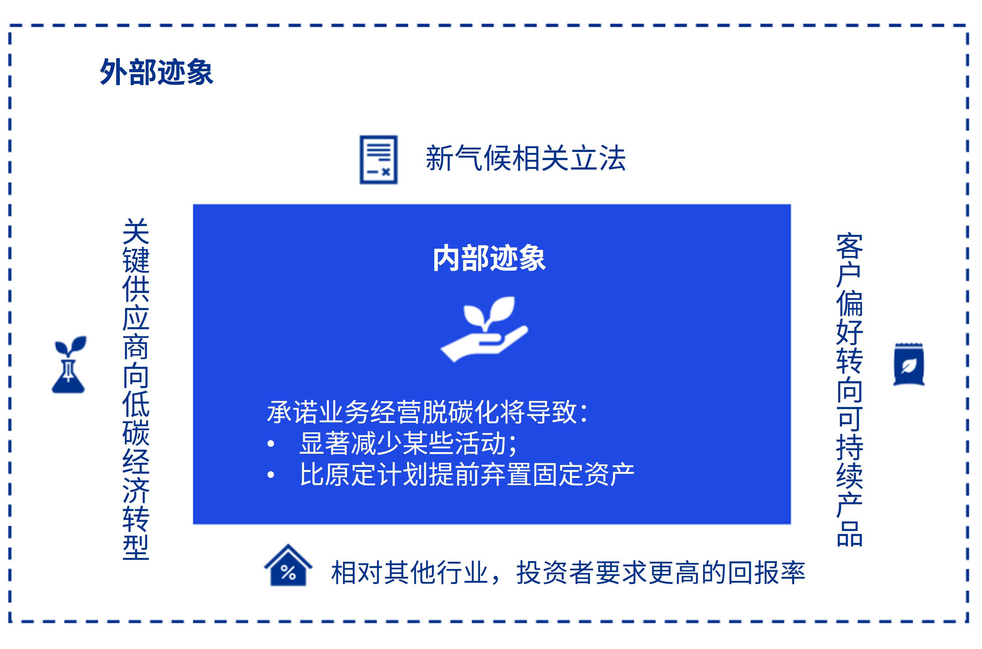 例如,某企业可能会自愿承诺业务经营脱碳化。因此,企业需要显著减少某些活动,并比原定计划提前弃置固定资产。