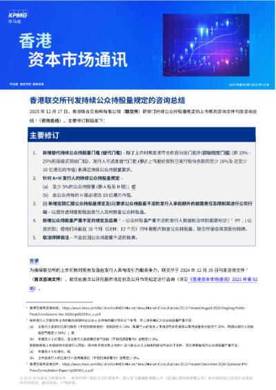 2025年12月17日,香港联合交易所有限公司(联交所)就修订持续公众持股量规定的上市规则咨询文件刊发咨询总结。