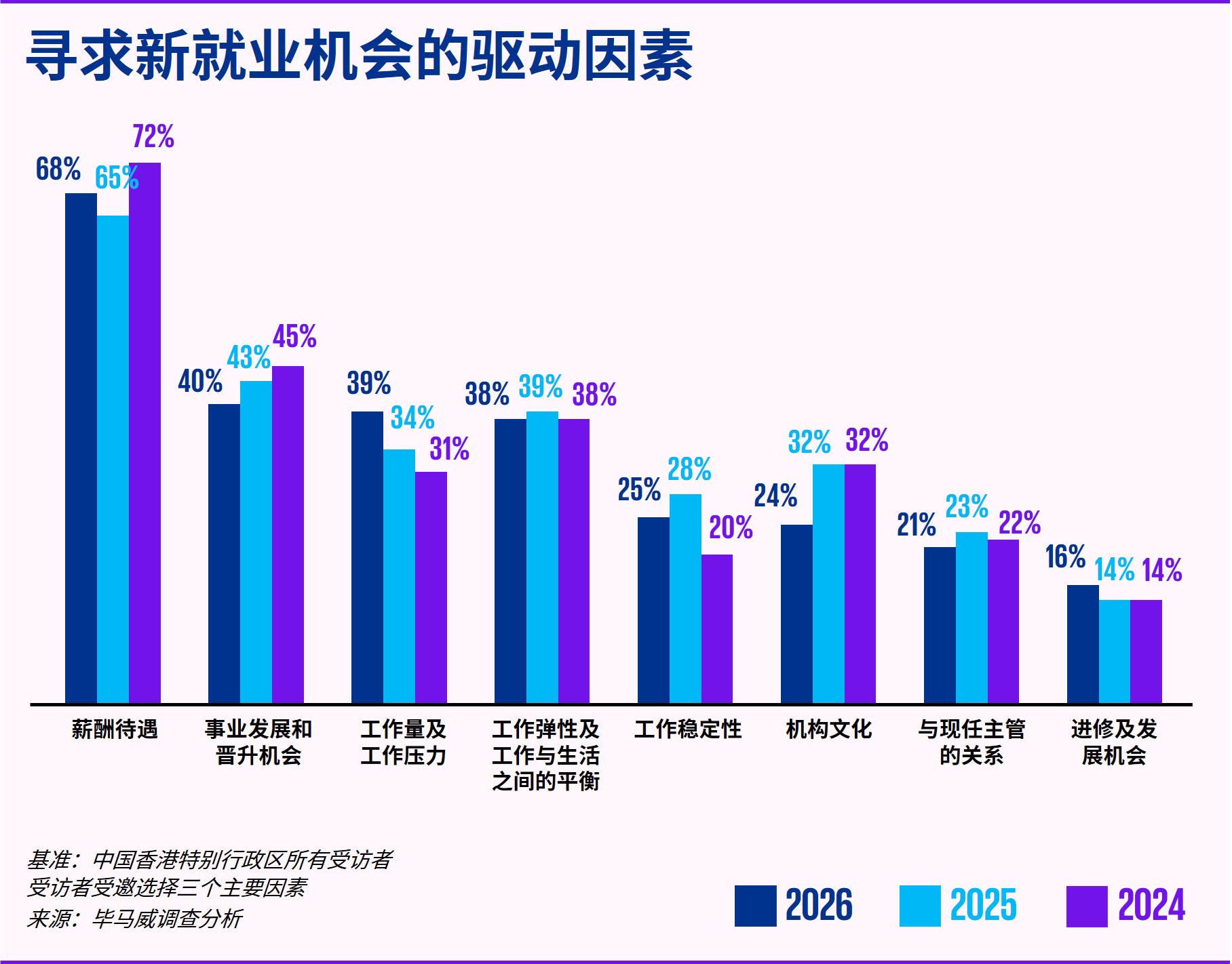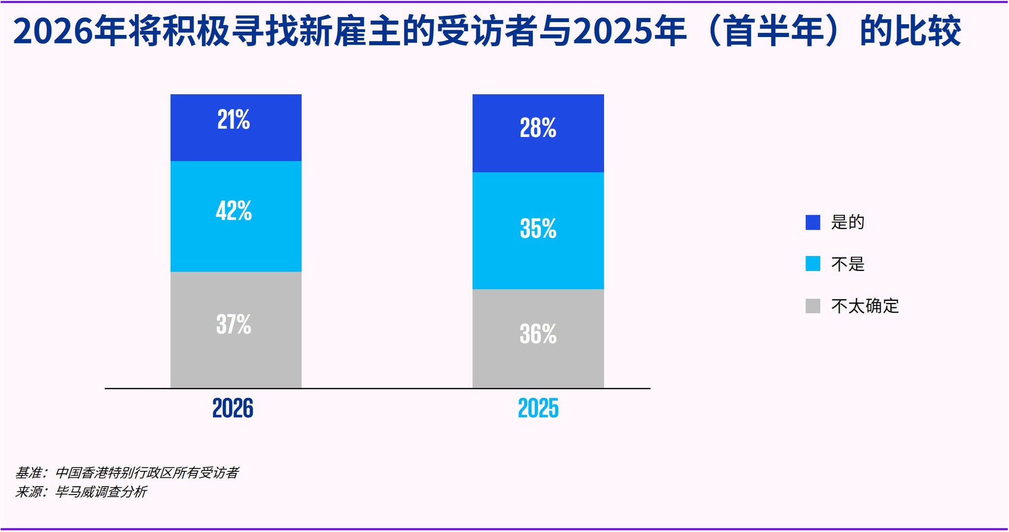 有21%的受访者表示将在2026年积极寻找新雇主,这一比例较去年的28%有所下降。在留任同一雇主的员工中,有63%获得了加薪,整体来看,职场人士在寻找新职位时正采取“观望”态度。