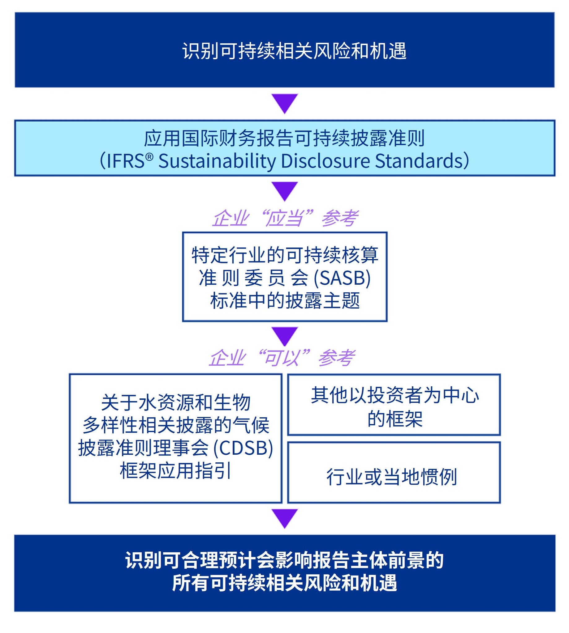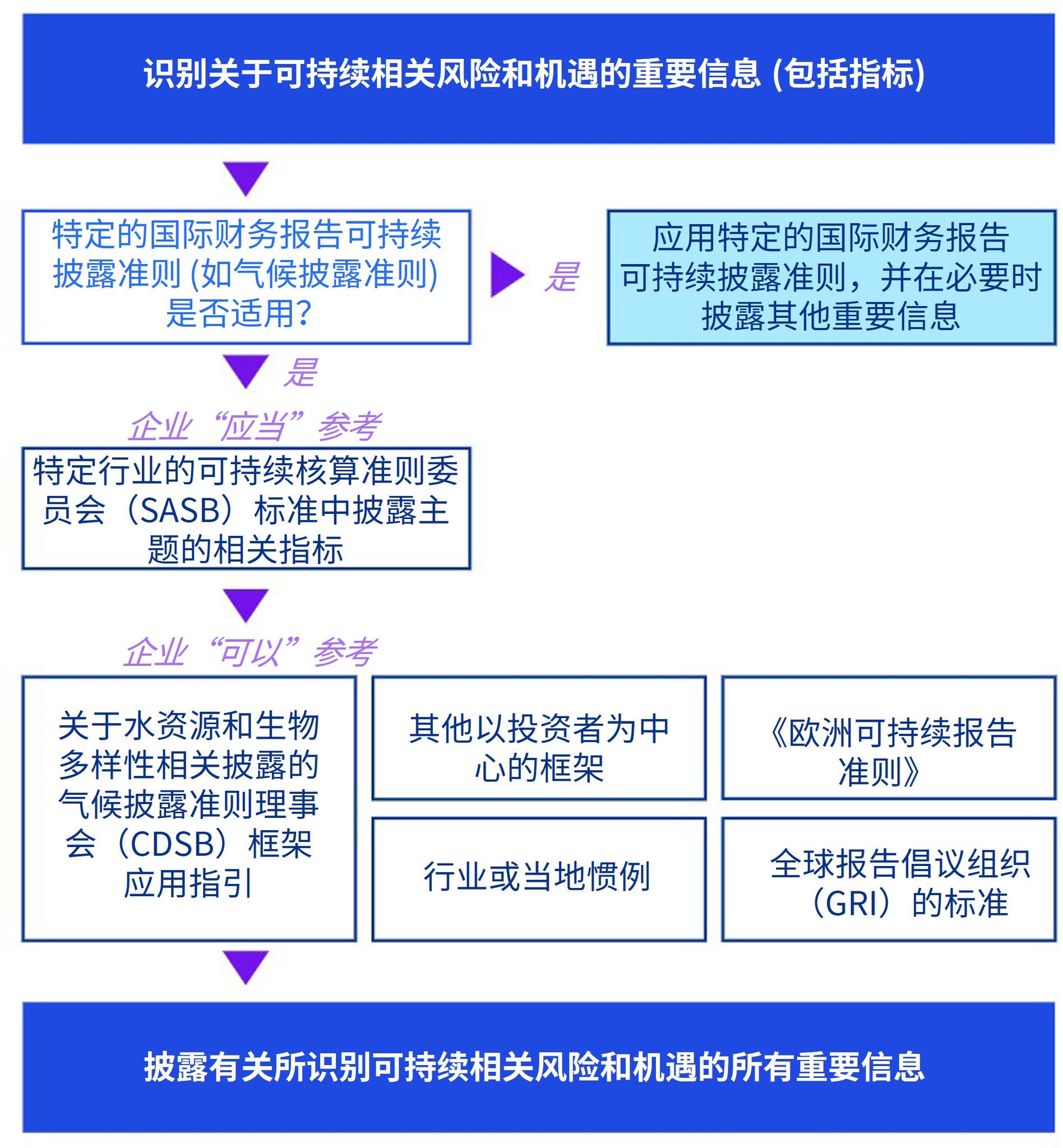 若国际可持续准则理事会 (International Sustainability Standards Board,ISSB) 尚未就某一特定主题发布准则,企业应使用一般准则中的框架来识别其他指引来源。
