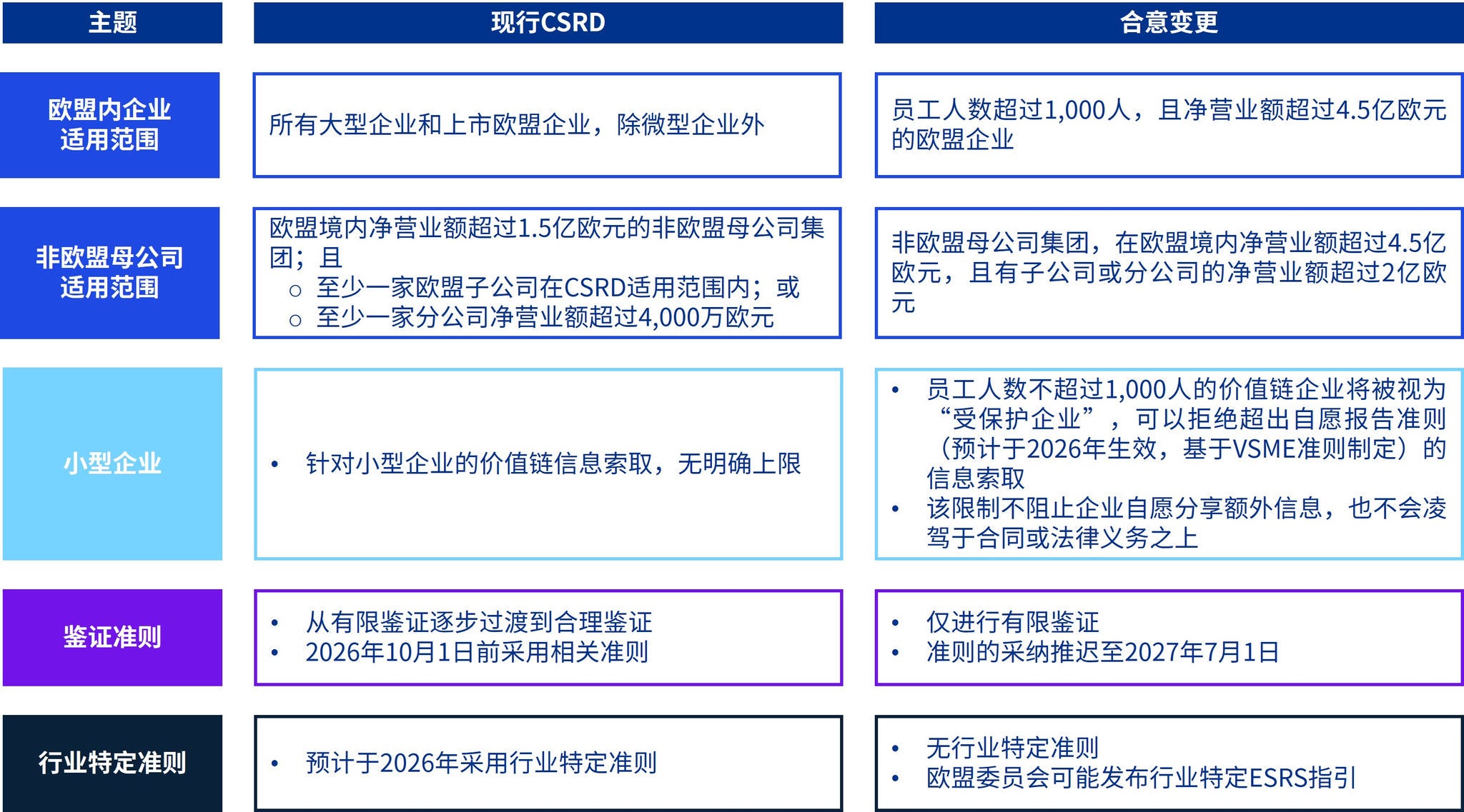 下表汇总了针对CSRD的主要变化。