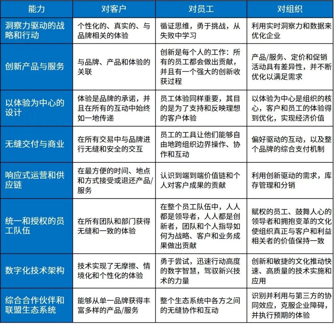 对于“智链企业”来说,体验就是一切,企业需要打造并提高以下能力,方得始终: