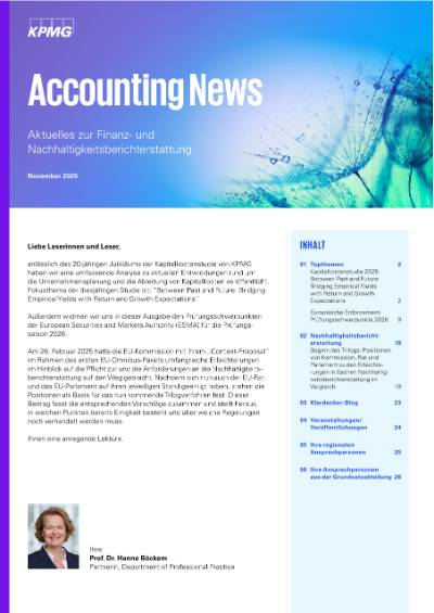 Außerdem widmen wir uns in dieser Ausgabe den Prüfungsschwerpunkten der European Securities and Markets Authority (ESMA) für die Prüfungssaison 2026.