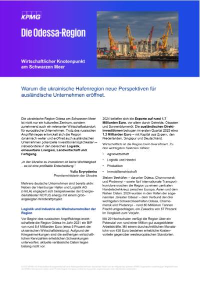 Weitere spannende Inhalte erhalten Sie in unserem KPMG Business Navigator - Odesa. Für den Download kontaktierten Sie uns gerne via Kontaktformular.