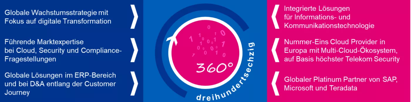 Telekom is one of the most important cloud providers in Europe and contributes strong solution expertise in key sectors such as public, retail and banking & insurance. It has an extensive product range, particularly in the areas of ERP and big data. KPMG complements this partnership as a business transformation expert in terms of consulting and implementation support. With innovative solutions, we make it easier for you to access customers and support you in developing and introducing new business models. Together, we bring business challenges and technical possibilities together.