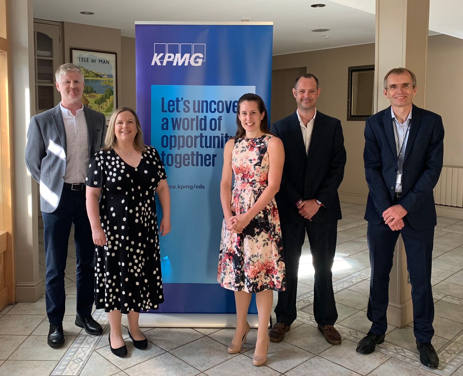 Pictured left to right below: Robert Rotherham, Katie Kneale, Clare Kelly, Phil Morris and guest speaker David Parsons, Isle of Man Treasury.