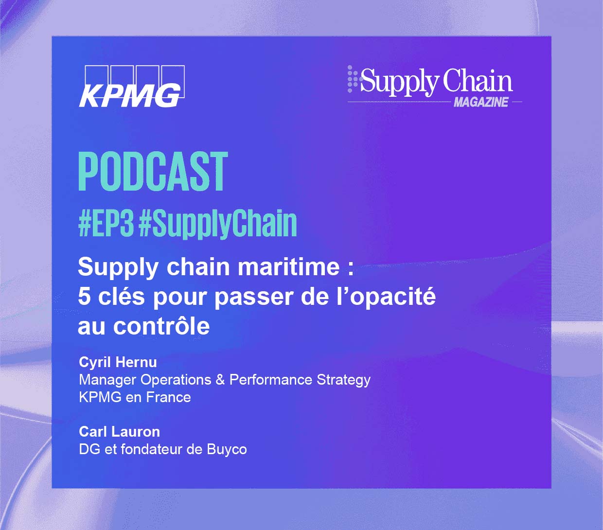 Cyril Hernu, Senior Manager Operations & Performances Strategy chez KPMG, et Carl Lauron, Directeur général et fondateur de Buyco, logiciel de booking et tracking de transport maritime, livrent dans ce podcast leur regard sur les mutations de la Supply Chain maritime.