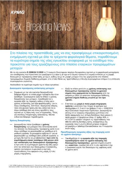 Στο πλαίσιο της προσπάθειάς μας να σας προσφέρουμε επικαιροποιημένη ενημέρωση σχετικά με όλα τα τρέχοντα φορολογικά θέματα, παραθέτουμε τα κυριότερα σημεία της νέας εγκυκλίου αναφορικά με το εισόδημα που προκύπτει για τους εργαζόμενους στο πλαίσιο εταιρικών προγραμμάτων μετοχών.