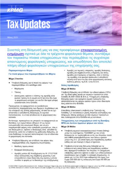 Συνεπείς στη δέσμευσή μας να σας προσφέρουμε επικαιροποιημένη ενημέρωση σχετικά με όλα τα τρέχοντα φορολογικά θέματα