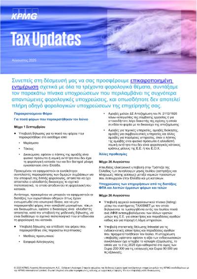 Συνεπείς στη δέσμευσή μας να σας προσφέρουμε επικαιροποιημένη ενημέρωση σχετικά με όλα τα τρέχοντα φορολογικά θέματα