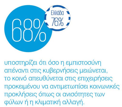 Η σύγκλιση σε θέματα που κυμαίνονται από την κλιματική αλλαγή έως τις κοινωνικές εντάσεις δεν έχει δημιουργήσει απλώς μια εκτεταμένη αβεβαιότητα-έχει θέσει υπό αμφισβήτηση το ρόλο που παίζουν οι θεσμοί στον κόσμο σήμερα. Στο πλαίσιο αυτό, οι προσδοκίες των ενδιαφερομένων μερών σχετικά με τις επιχειρήσεις έχουν αυξηθεί και οι ενέργειες των επιχειρήσεων και των ηγετών τους βρίσκονται υπό αυξανόμενο έλεγχο. Σήμερα, οι CEOs στοχεύουν να επιτύχουν τα κέρδη για τους μετόχους που αναμένουν οι επενδυτές και συμβάλλουν στη δημιουργία ενός καλύτερου μέλλοντος για την κοινωνία.