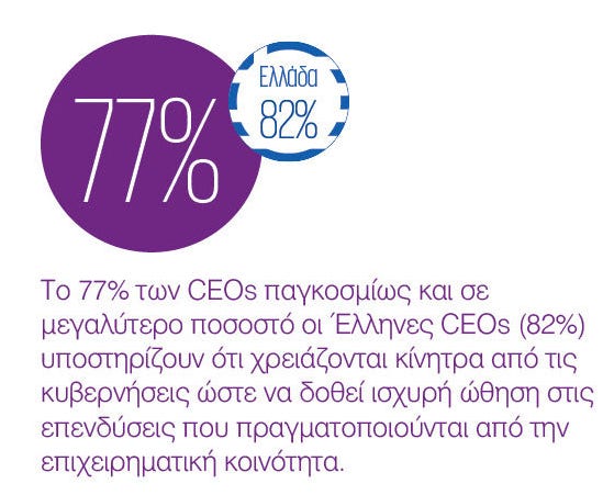 Οι CEOs δηλώνουν βέβαιοι και αισιόδοξοι για την ανάπτυξη, νιώθουν ισχυρή σύνδεση με τον σκοπό τους και αποζητούν να προωθήσουν την επέκταση.