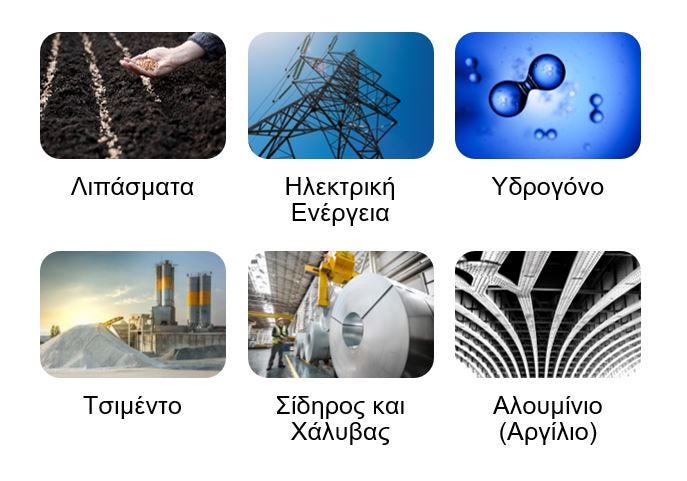Οι κατηγορίες προϊόντων που υπάγονται στο πεδίο εφαρμογής του Κανονισμού είναι αυτές που χαρακτηρίζονται ως υψηλής έντασης άνθρακα, και συγκεκριμένα: