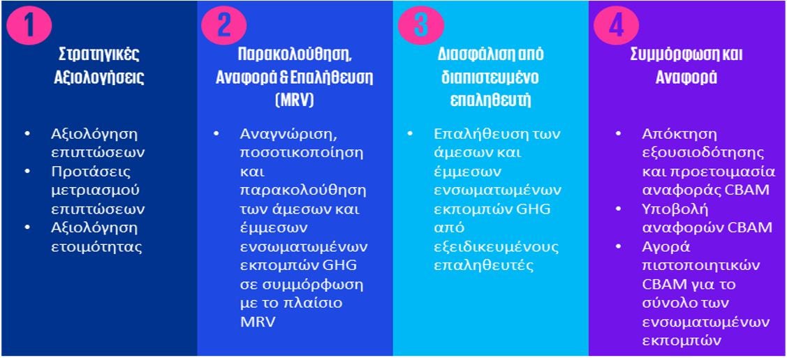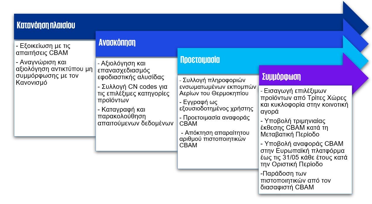 Για τη διασφάλιση της ικανότητας συμμόρφωσης με τις απαιτήσεις του Κανονισμού 2023/956, οι υπόχρεες εταιρείες επιβάλλεται να εκμεταλλευτούν την Μεταβατική Περίοδο για την εξοικείωση με τις προδιαγραφές του CBAM, την απόκτηση γνώσης αναφορικά με την υποβολή των αναφορών και τον περιορισμό των διαταραχών στο επιχειρηματικό τους μοντέλο και την αλυσίδα αξίας τους.