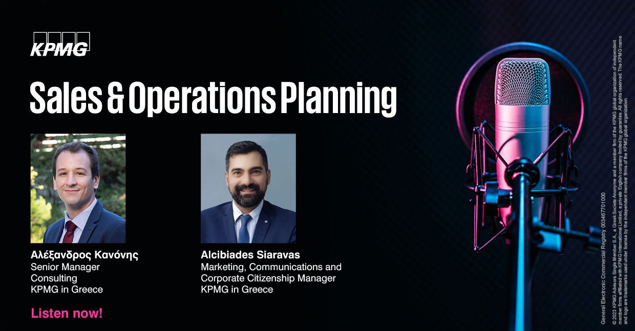 O Aλέξανδρος Κανόνης, Senior Manager, KPMG στην Ελλάδα μιλάει για το Sales & Operations Planning (S&OP) και απαντά σε ερωτήματα του Αλκιβιάδη Σιαράβα, Marketing, Communications & Corporate Citizenship Manager, KPMG στην Ελλάδα όπως τι είναι το Sales & Operations Planning (S&OP), γιατί είναι σημαντικό για τις εταιρείες, ποια είναι τα οφέλη του;