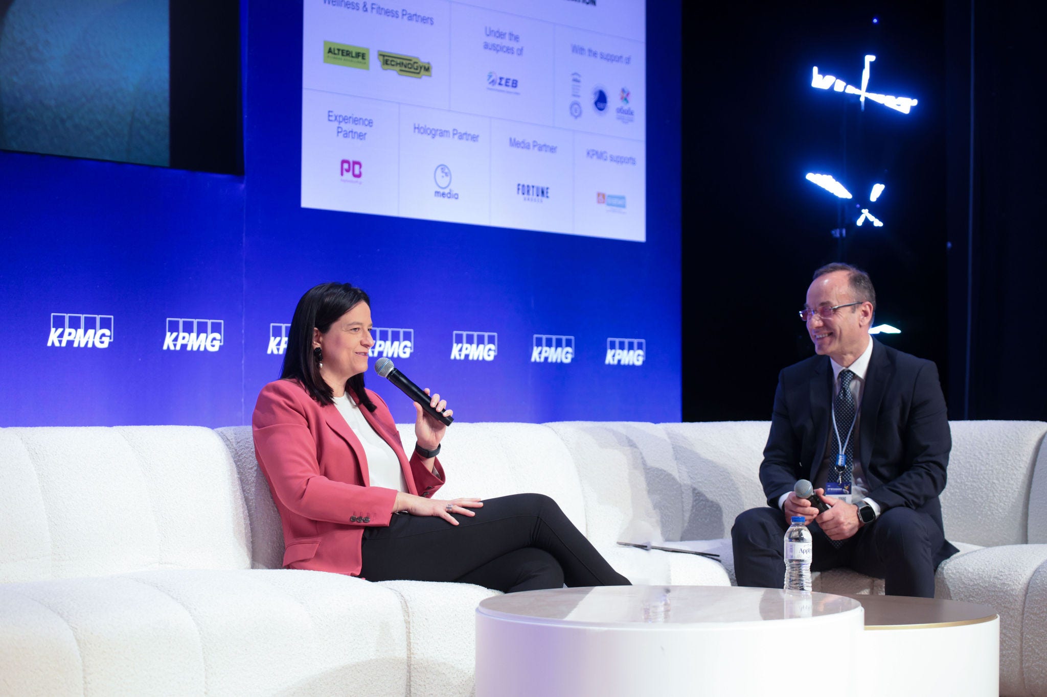 Στην ιδιαίτερα επίκαιρη συζήτηση με τίτλο “Why CHROs will be the next CTOs and how this delivers on the AI promise”, η Γεωργία Καλεμίδου, Director, People Services, Advisory, KPMG στην Ελλάδα, συνομίλησε με τον Niale C. Cleobury, AI Workforce Lead, KPMG Global. Η συζήτηση εστίασε στον εξελισσόμενο ρόλο των CHROs ως στρατηγικών ηγετών του ψηφιακού μετασχηματισμού, αναδεικνύοντας πώς η σύγκλιση τεχνολογίας και ανθρώπινου δυναμικού επαναπροσδιορίζει τη δομή και τη λειτουργία των οργανισμών, ενώ εξετάστηκε πώς η ΤΝ μπορεί να συνδεθεί ουσιαστικά με τη δημιουργία επιχειρησιακής αξίας.