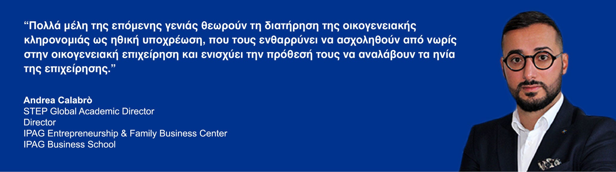 Μας υπενθύμισαν επίσης ότι η κληρονομιά δεν αφορά μόνο το να κοιτάζουμε προς το παρελθόν, σε όσα έχουν αξία, τόσο για την επιχείρηση όσο και για την οικογένεια, αλλά ότι πρέπει να κοιτάζουμε μπροστά, σε όσα δίνουν κίνητρο στις οικογένειες ώστε να θέλουν να συνεχίσουν να χτίζουν πάνω σε αυτήν την αξία και για τις μελλοντικές γενιές.