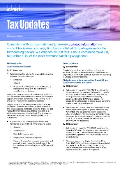 Consistent with our commitment to provide updated information on current tax issues, you may find below a list of filing obligations for the forthcoming period. We emphasize that this is not a comprehensive list, but rather a list of the most common tax filing obligations.
