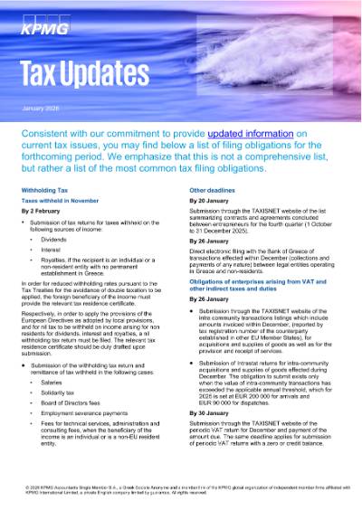 Consistent with our commitment to provide updated information on current tax issues, you may find below a list of filing obligations for the forthcoming period. We emphasize that this is not a comprehensive list, but rather a list of the most common tax filing obligations.
