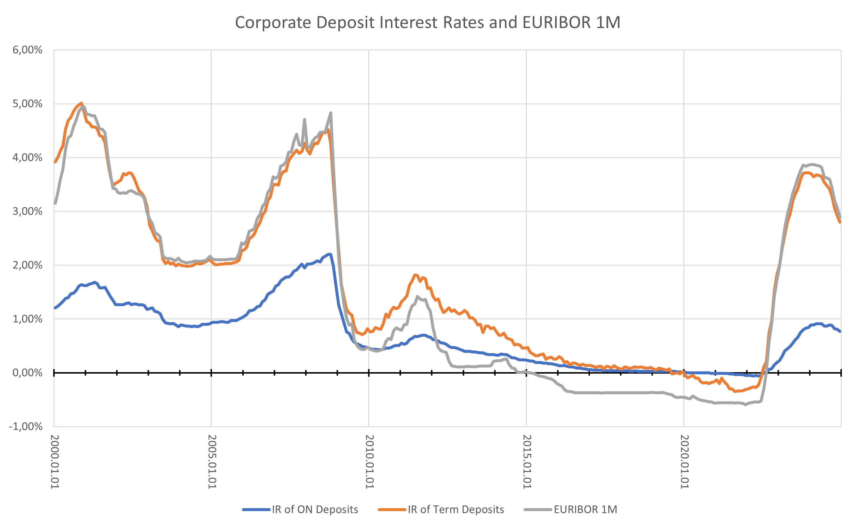Figure 3: Corporate Deposit Interest Rates and EURIBOR 1M