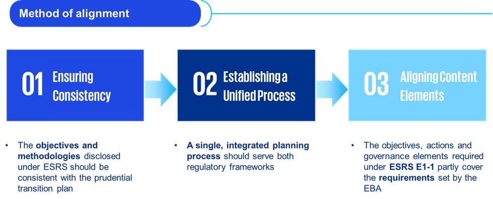 The EBA therefore recommends establishing an integrated, unified planning process that meets both prudential and sustainability reporting requirements.