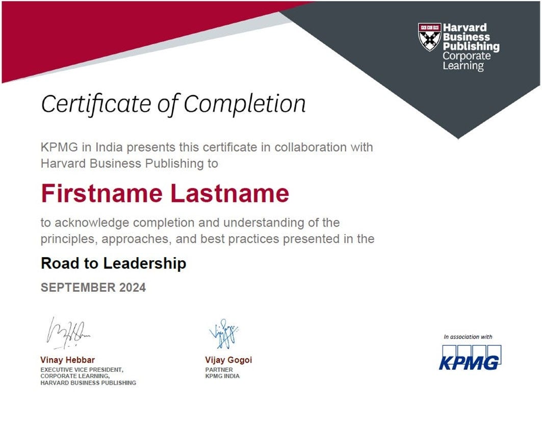 The programme is designed and delivered by KPMG in India and Harvard Business Publishing, two organisations that are among the leaders in their industries.