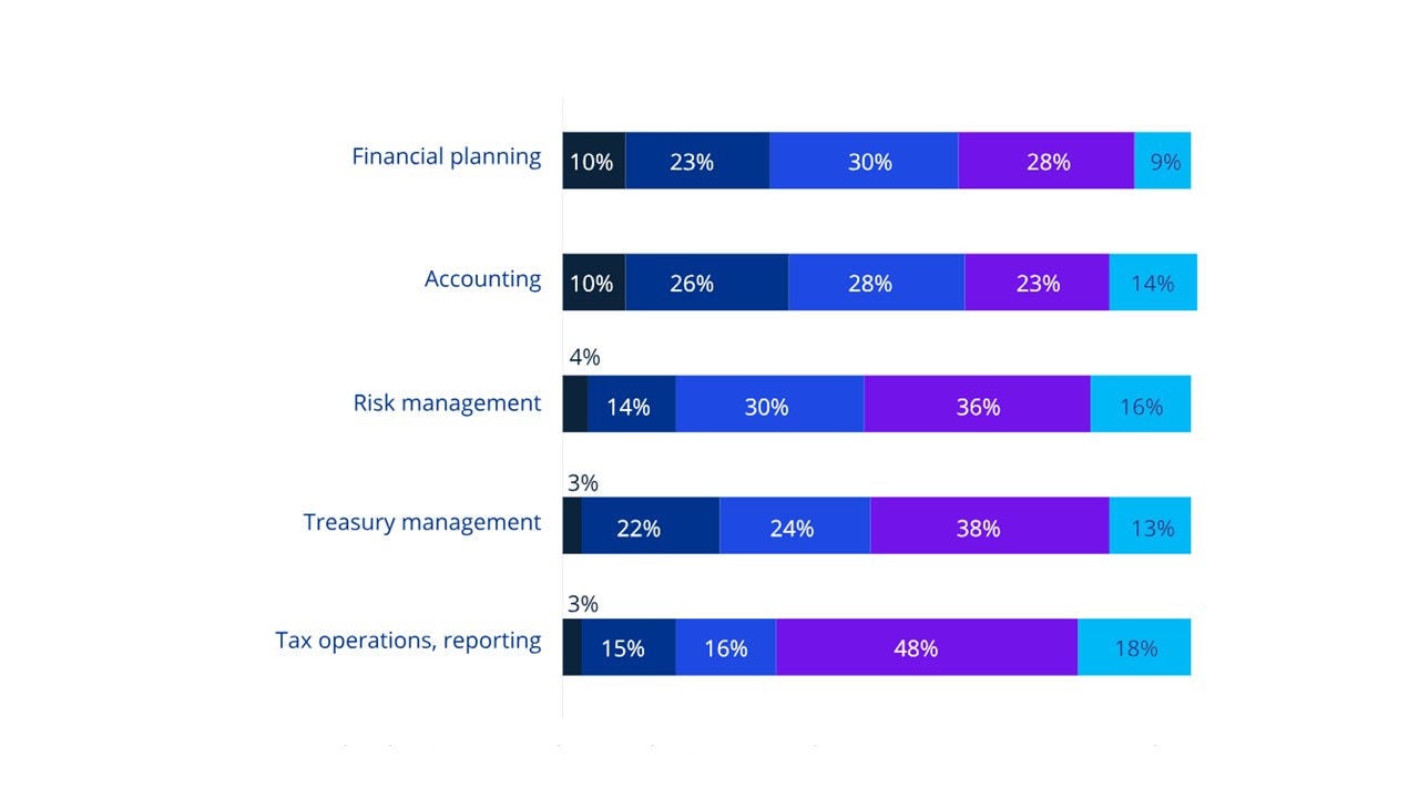 La rendicontazione finanziaria è l'ambito di applicazione più comune dell’AI, ma si sta ampliando per includere contabilità, pianificazione finanziaria, gestione della tesoreria, risk management e gestione fiscale. Secondo i risultati della survey, quasi tre quarti dei leader hanno sviluppato principi e linee guida sull'uso responsabile dell'intelligenza artificiale.