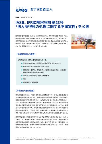 IFRSニュースフラッシュ - IASBは2017年6月7日にIFRIC解釈指針第23号「法人所得税の処理に関する不確実性」を公表しました。
