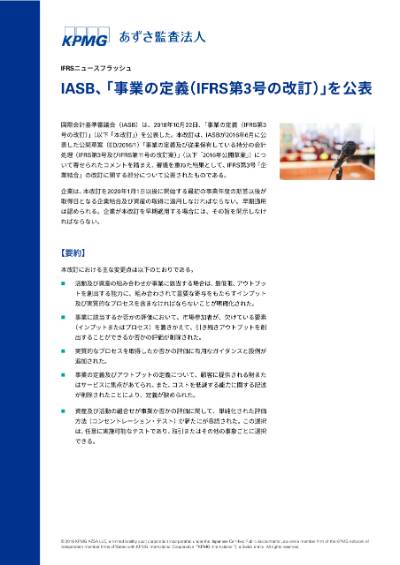 IFRSニュースフラッシュ - 国際会計基準審議会(IASB)は、2018年10月22日に最終基準「事業の定義(IFRS第3号の改訂)」を公表しました。