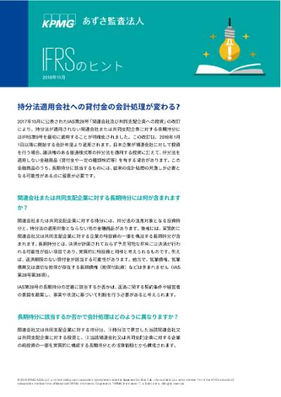 IFRSのヒント - 2017年10月に公表されたIAS第28号「関連会社及び共同支配企業への投資」の改訂により、持分法投資先への貸付金/種類株式投資が長期持分に該当する場合には、従来の会計処理の見直しが必要となる可能性があります。