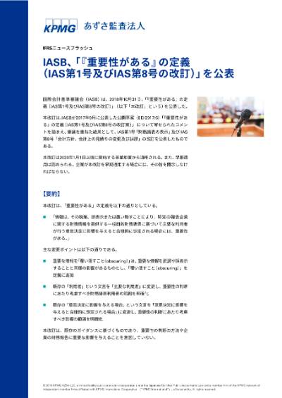 IFRSニュースフラッシュ - 国際会計基準審議会(IASB)は、2018年10月31日に最終基準「『重要性がある』の定義(IAS第1号及びIAS第8号の改訂)」を公表しました。