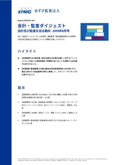 会計・監査ダイジェスト 会計及び監査を巡る動向 2019年8月号